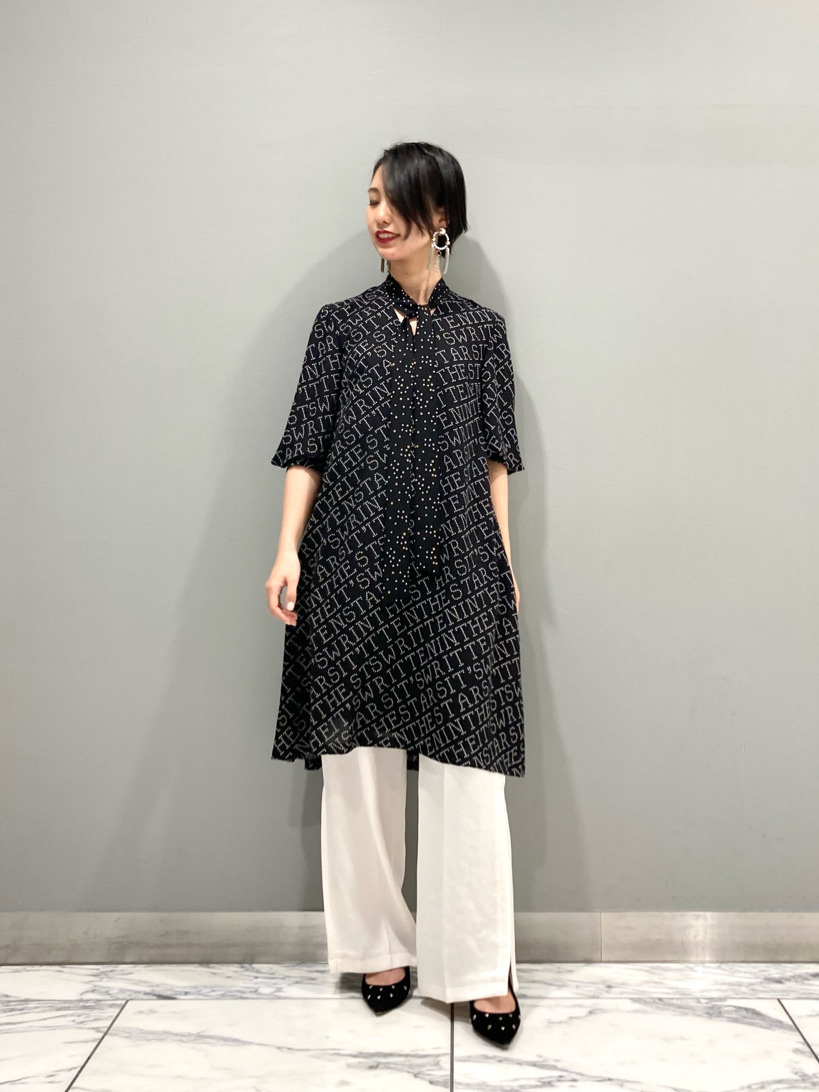 休日はゆったりとした上品ワンピをパンツスタイルで楽しむ♡