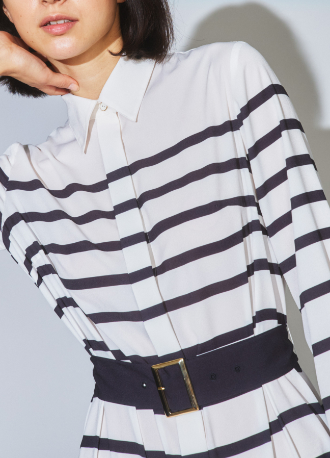 凛とした立ち姿が叶う、バイカラーのシャツワンピース。